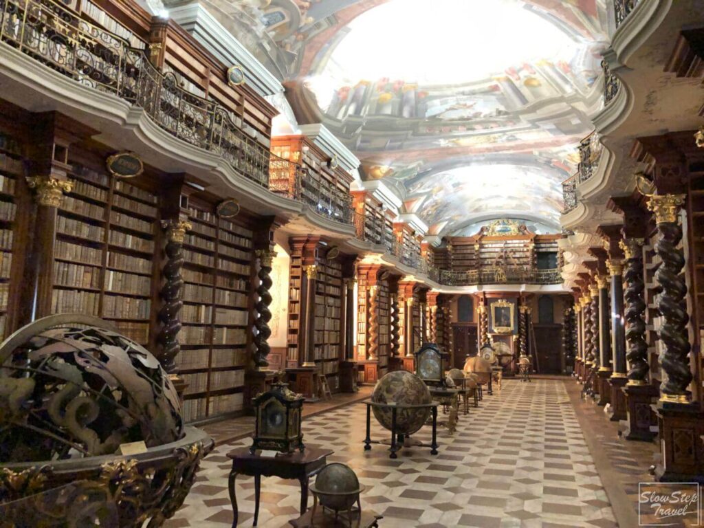克萊門德學院是一個位於老城區巴洛克式的建築群,起初是一間修道院,後來改成為大學,陸陸續續增建包含有天文台,圖書館以及大學。整個建築內最讓人趨之若鶩的就是世界最美的圖書館。購票會依時段入內參觀,由一位導覽員帶著大家,一層一層(1-5)往上走,旋轉樓梯稍窄,如果可以無包包輕裝參觀是最好的。雖然是爬樓梯往上,但每層都會稍作停留講解,所以其實不會很累。最美圖書館開放遊客站在門口欣賞,唯美巴洛克式的大房間,層架上擺滿了古老書籍,大多典藏著宗教相關的書籍。擺在中央的地球儀,大大小小地排排站,相當可愛,也顯示著天文塔觀測星相的證明。想拍照不用急,導覽員會讓大家拍好拍滿,再繼續出發。接著上頂樓天文台參觀,可以360度繞一圈,近距離欣賞布拉格城市,是個產出多美照的景點,唯獨上面風勢較大,需要稍微顧一下妝髮。就算有懼高症, 不太敢出去走,在室內各面也有窗戶,還是都看得到戶外景色。如果好天氣的話,非常推薦一次欣賞最美圖書館以及布拉格城市之美。因爲這是一個臨時安排的行程,沒有事前上網買票,因此只能到現場購票。開門前10分鐘才抵達,不出所料,現場整個大排長龍,大家都是為了一睹最美圖書館而來。這樣大概排了一小時,才輪到我們。而且上午的票券已經售完,只能買到下午英文導覽的票券。這個景點超級熱們,建議事前先上網購票,或早點來現場排,才不會花寶貴的時間在排隊上。