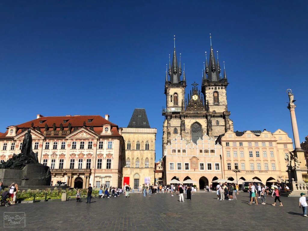 穿越老城廣場到另一座泰恩教堂,走路不用5分鍾。也是必看景點之一。遠遠地就可以看到標誌性的哥德式雙塔造型,雙塔上各自又再有4個小塔,成為奇特的造型。但黑色高聳的雙塔在當時其實是令人心生畏懼,因此有些人會稱它為惡魔教堂。教堂正前方有一排小房子,所以必須傳過一個小巷子,才會到達入口。教堂可以免費參觀,內有一座保存良好的古老管風琴。因此推薦大家。