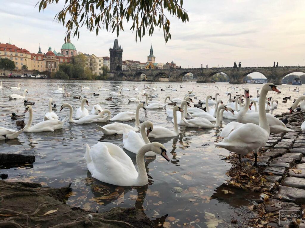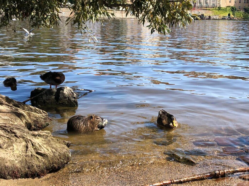 又是一個明信片的景點,從河畔望去,整座查理大橋與老城橋塔完全映入眼簾。從早到晚都是最佳觀賞時間點。還記得冬天經過時,成群的天鵝在這邊聚集,簡直是他們的中繼休息站。時不時上岸大搖大擺地散步,天鵝站起來幾乎是一個小朋友的身高。隨便拍都是浪漫滿滿的照片,雖然有那麼點貌似養鴨場。這次夏末再度經過,少了白天鵝點綴,卻看到幾隻海狸鼠。起初遠遠地從橋上往下看,以為有人在餵食水豚君。趕快跑到橋下去湊熱鬧。湊近看發現它頭型不太圓,還有著長長地尾巴,查詢之下,才發現原是海狸鼠。這幾天從橋上往下望,至少看到2-3次,感覺他們已經常住在這了。畢竟是外來種,會避免破壞原始生態,建議不要餵食,看看就好了。期待白天鵝的回歸。