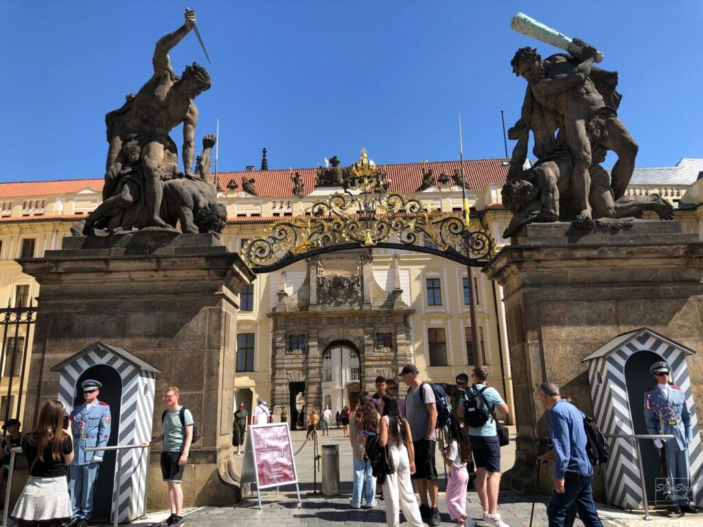 城堡建築群位於小山丘上,遠遠地就可以從老城區看到城堡的身影。較著名的有,全都在這一區。如果想要慢慢看的話,在這待上2-3個小時也不嫌多。往山上可以搭乘路面電車至城堡後方入口進入,幸運的話還可以在草地上看到孔雀。走入城堡區還不用驗票,可以隨處走走看看。但是要進入教堂建築及黃金巷內,就需要購買入場券。票券有多種組合,這邊推薦的主要票券,包含4個參觀點:聖維特大教堂,舊皇宮,聖喬治教堂以及黃金巷。票券期為連續兩天內可以使用,但各景點只能入場一次,在時間安排上比較寬裕,非常適合慢遊的自助旅客。也別忘了中午12:00準點在第一庭院的衛兵交接儀式,儀式感十足,若人剛好在城堡區,就繞過去看看吧。