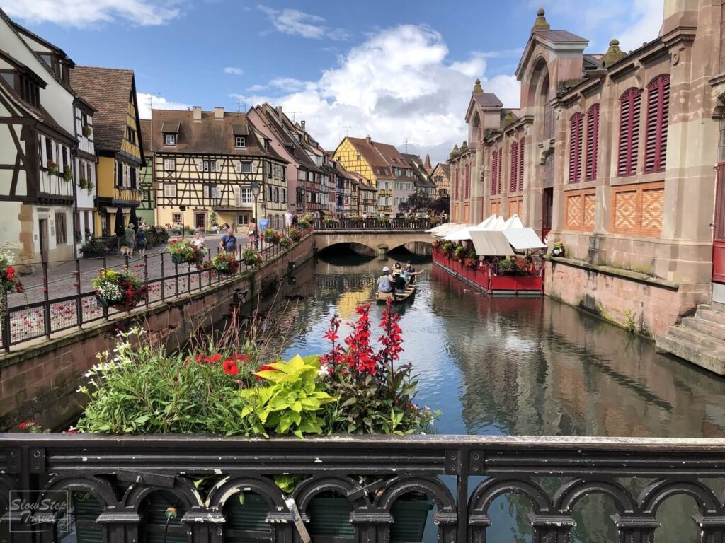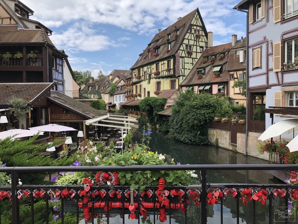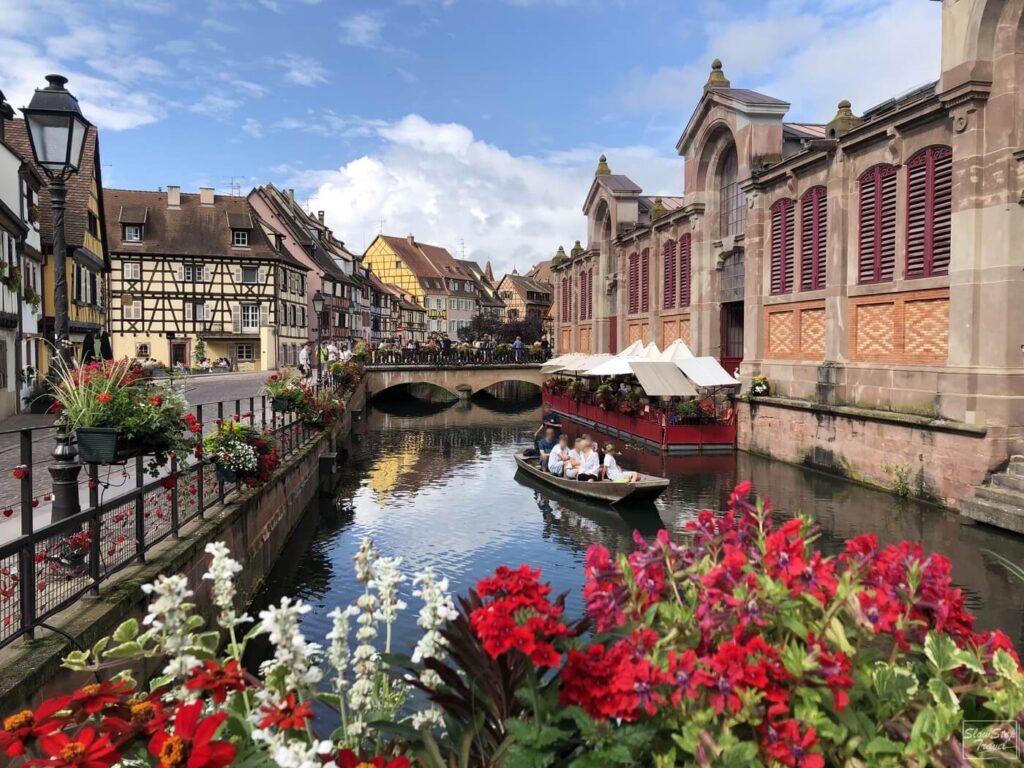 科爾馬/科瑪 Colmar位於德法邊界的小鎮,雖然隸屬於法國,但是因為政權多次易主,所以擁有德法兩國混合的獨特風情。其中最大的特點就是保存完好的半木造建築的房屋群以及老城區,因此這裡一直以來都是歐洲人心中最美小鎮之一。而遠在亞洲的我們對這個隱藏的美麗小鎮原本是一無所知。然而吉卜力工作室製作的動畫,霍爾的移動城堡,就是以這座美麗小鎮作為靈感,繪製出女主角蘇菲住家地區。原以為只存在故事中的小鎮,居然真有其地。身為吉卜力迷,是一定要把它列在必去清單內。有些人會選擇冬季到此一遊,因為當地的耶誕市集相當有名。而個人想要有完全複製動畫中那些窗台種滿花草的場景。所以等阿等,直到今年夏天終於出發前往小鎮參觀,一圓踏進蘇菲家鄉的夢想。