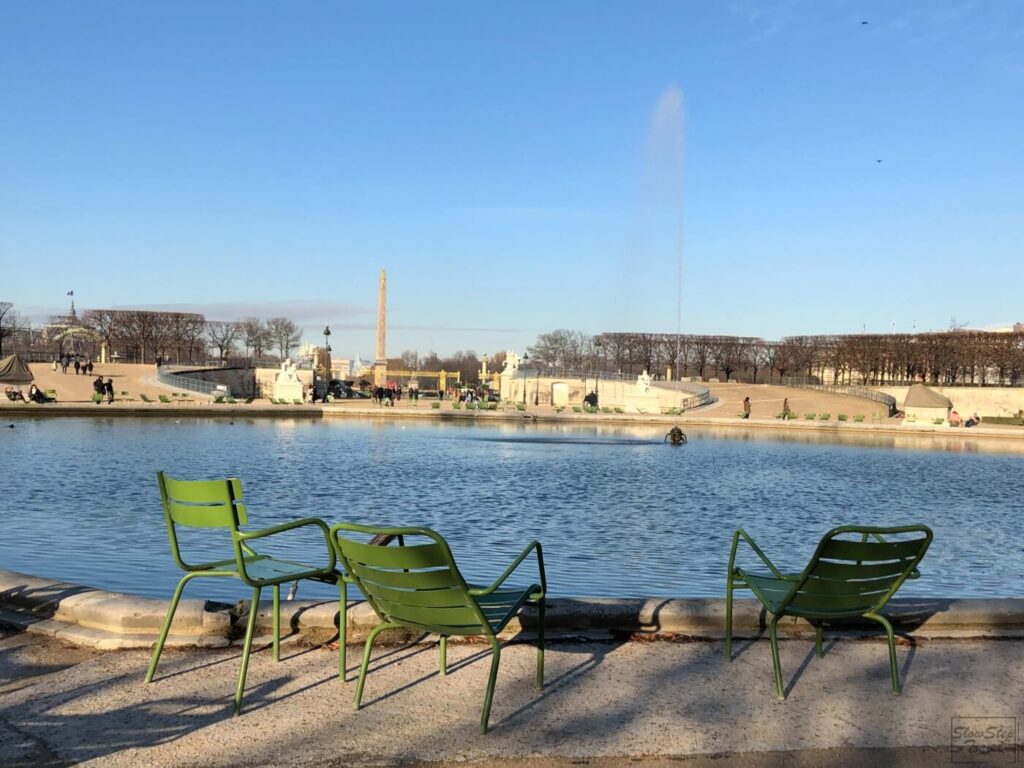 杜樂麗花園位於羅浮宮與協和廣場之間,為當年王后凱薩琳·德·美第奇建造杜樂麗宮時,所設計的一座花園,然而杜樂麗宮歷經了巴黎公社的入侵以及大火焚毀,已拆除查無此地。但所幸這座巴洛克式花園被保留至今,成為散步的好地點。大家尤其喜歡坐在圓形水池邊的綠色椅子上,已成為拍美照的一個標記性地點。