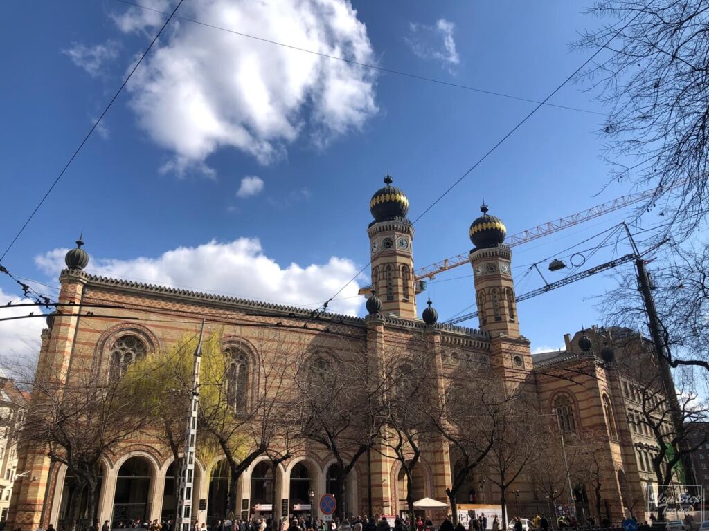 從1859年完工的菸草街會堂,是歐洲最大,世界上第二大的猶太教堂。從外觀看起來是採用摩爾復興式的建築,別具特色。內部顯得非常莊重且神聖。往旁邊的花園走去,有一座猶太大屠殺的紀念碑,使用鋼材質打造出一棵柳樹,樹葉上刻上受難著的姓名。當微風吹動時,葉子互相碰撞發出清脆地聲響,提醒著我們就算在太平盛世也不要忘記曾經發生過的悲劇。進教堂參觀有需要注意的禮儀,男士要帶著帽子或是紙做的小圓帽,表示對上帝的尊敬。就近在猶太街區逛逛,時不時都會注意到牆上的塗鴉壁畫,現在也變成這一區另類的特色。