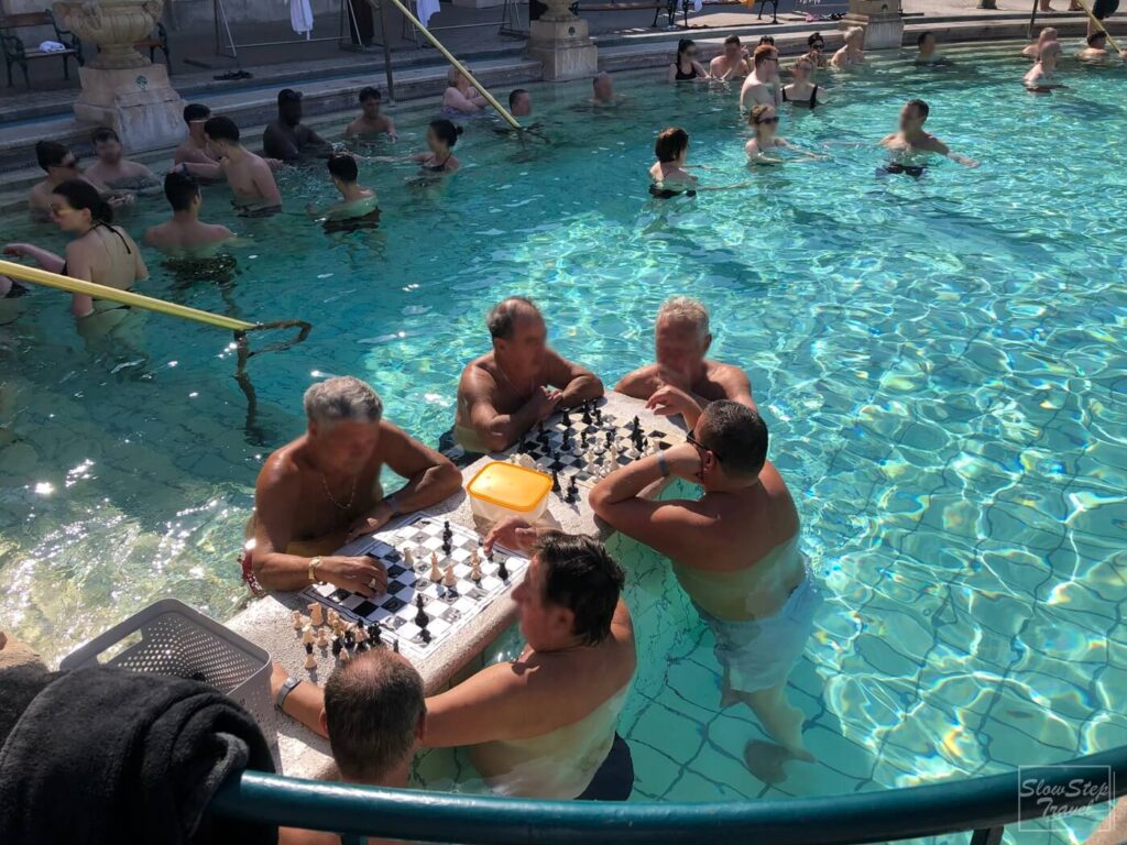 布達佩斯有溫泉之都的美名,據說整座城市有100多處的溫泉。其中塞切尼溫泉號稱是歐洲最大溫泉之一。官方公告溫泉水含有鈣、鎂、碳酸氫鹽鈉和硫酸鹽,以及大量的氟化物和偏硼酸。建議療效是針對退化性關節疾病,慢性及亞急性關節炎,骨科和事故後等等治療。但對一般大眾來說,最吸引人的是整座融合羅馬,希臘,東方等等風格的建築與浴場,能夠在這麼有特色的地方泡溫泉,簡直是一大享受。有浴場,蒸氣室,還有私人的水療室,種類非常多。最常看見大家分享的是室外池。一共有三座,中間長條形的是游泳池,兩側分別為有圓形旋轉的休閒池(30-34度)與阿伯下西洋棋的溫泉池(36-38度)。圓形旋轉池每隔10分鐘啟動一次,中間時段會穿插按摩的水流。旋轉池的水流很強,不要想抓住東西,順著水流漂,跟著大家一起轉圈圈,既刺激又有趣。直到玩了3輪後,才心滿意足地起身換池子。另外一池溫度比較高,泡起來比較有感。大約10點過後率續出現來下棋的阿伯。當天甚至還開到第二桌,果然社交意義大於遊戲本身。溫暖的室內溫泉都一池一池泡泡看,不時走進蒸汽室蒸乾身體,裡面有涼涼薄荷味,才不至於呼吸困難。跟室內池比,個人覺得戶外池是最好玩的部分,戶外泡了近1小時,沒有防曬的保護,回家才發現不僅變黑,還曬傷了。千萬別小看3月的太陽,還是相當地毒辣。來布達佩斯推薦至少要有一次的溫泉體驗。小提醒:自2025年8月1日起,14歲以下兒童不得參觀塞切尼溫泉浴場。