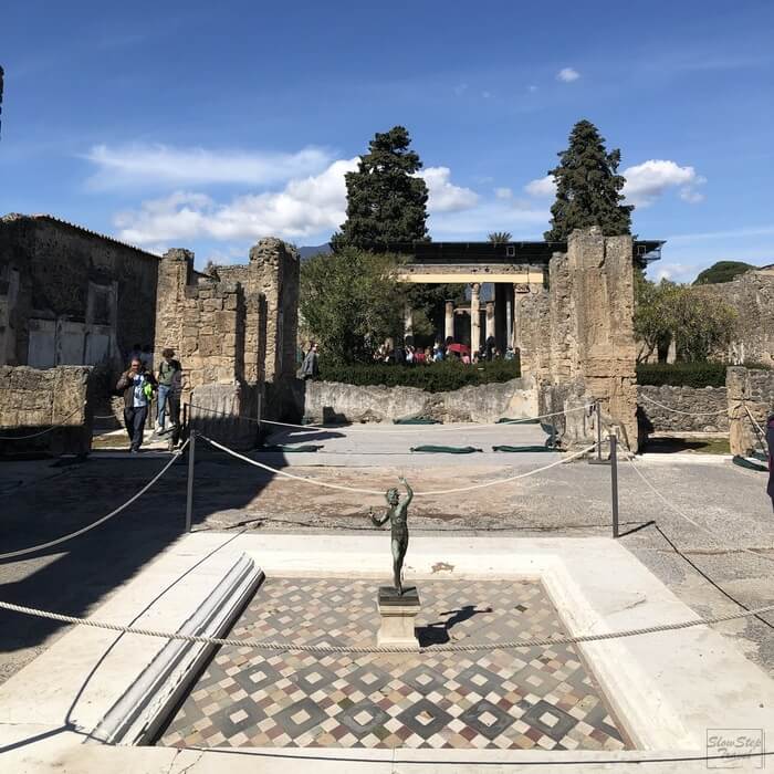 因為在此發現牧神的雕像,所以稱為牧神之家。佔地非常地大,總地坪有3000平方公尺。裡面有很多裝飾藝術品,其中最有名的就是亞歷山大馬賽克的地磚,現在保存於那不勒斯考古博物館中,這邊放的是複製品。