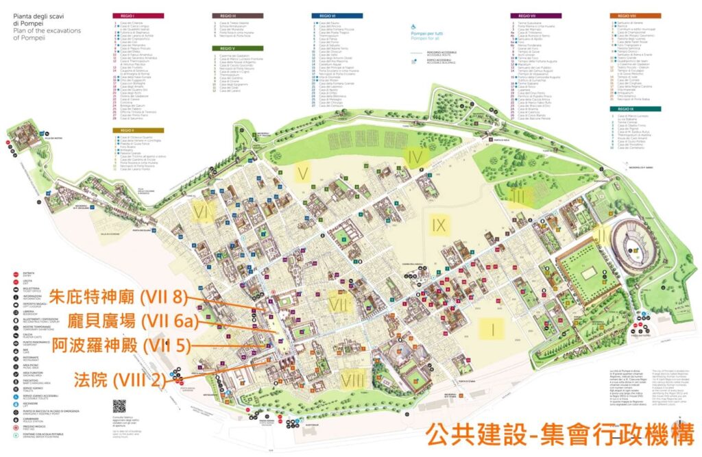官方中文版導覽 : https://pompeiisites.org/wp-content/uploads/Pompeii_ZH.pdf - 官網互動式地圖則是線上點選景點,會出現介紹與圖片。