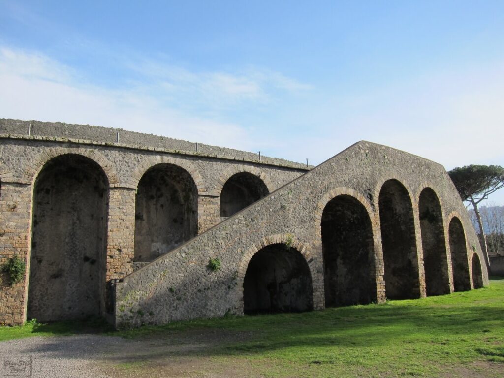 最古老的羅馬帝國時期的圓形競技場之一,於西元前70年的時候建造的,最多可以容納20000人,位置鄰近郊區。當時民眾熱愛的羅馬角鬥士文化就在這裡舉辦,所以不只是龐貝的居民,連鄰近的城鎮的人也會跑來觀看。