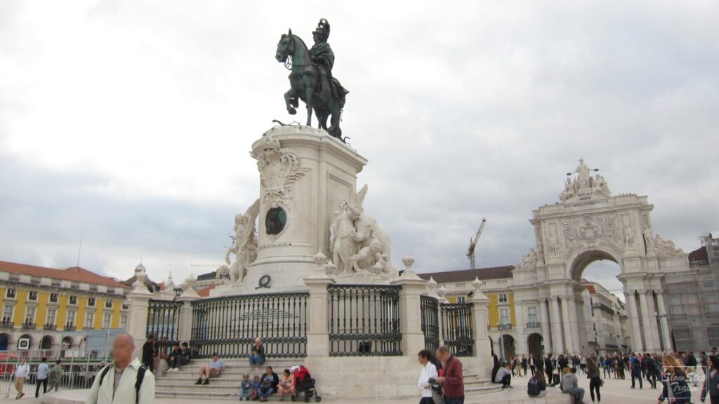 曾經是國王宮殿所在,稱為宮殿廣場 Terreiro do Paço。因遭遇大地震後毀壞。而後改建為商業廣場,成為大眾重要的聚會地點,定期會舉辦慶典和活動。在此最吸睛的就是奧古斯塔街凱旋門Arco da Rua Augusta與約瑟夫一世國王雕像Estátua equestre de D. José I。高聳的奧古斯塔街凱旋門,是為了紀念大地震後,重建城市的辛苦。石拱門設計精緻,上面有葡萄牙歷史上的關鍵人物的雕像。如發現好望角到印度的海上航線的航海家瓦斯科達伽馬Vasco da Gama,與在地震後,主導城市重建工作的龐巴爾侯爵Marquês de Pombal。而兩個斜臥的人物象則是代表特茹河和杜羅河。約瑟夫一世國王騎馬的青銅像特別之處,是當在國王還在世時,就已完成的雕像。