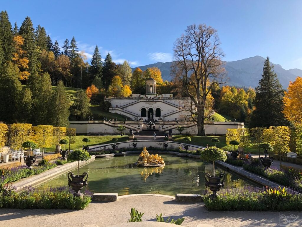隱藏在山林中的國王城堡,是巴伐利亞最最浪漫的國王 路德維希二世在世時,唯一一座完工的城堡,並且在此實際生活過一段時間。因為地理位址的關係,腹地不大,所以在此設計了一座小巧但內部精緻的國王個人宮殿。且開放導覽參觀,裡面的房間設計精緻,每個角落都富含意義,完全按照國王路德維希二世的私人喜好所打造的生活環境,因此可以稍稍了解國王的頭銜下,路德維希二世的真實性格。宮殿前有一座噴水池公園,水池中央的金色雕像,顯示著皇家尊爵不凡的氣質。在秋天時節,林德霍夫宮被妝點著花俏顏色的森林所環繞著,像是許多打扮著花枝招展的貴族小姐們,想要使出渾身解數,來取得國王的青睞。小提醒,這座隱藏在山林中的宮殿,因為路途遙遠。如果是搭乘公共交通工具的話,來回車程可能就要花費半天時間以上,所以大概只能留個一天一堡來參觀。但是能夠自行開車的話,會推薦 一日新天鵝堡與林德霍夫宮旅遊,一次收集兩座城堡,浪漫加倍。