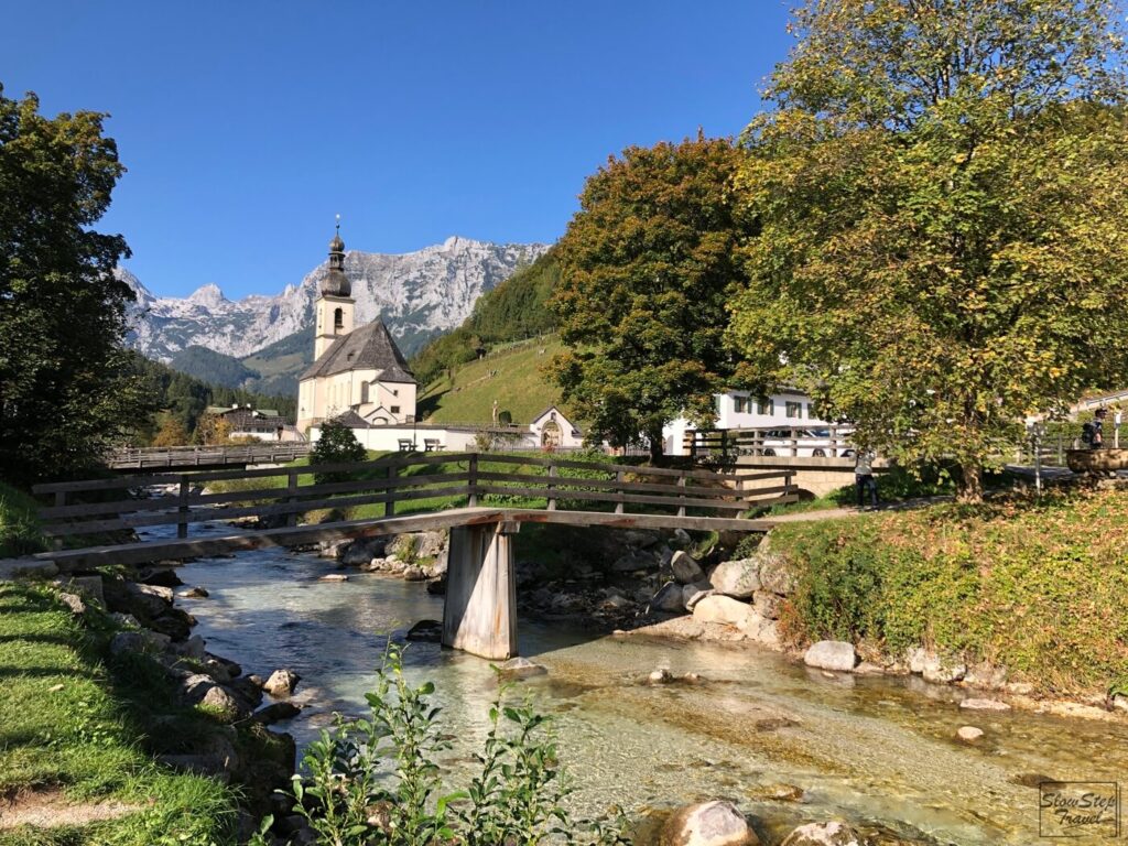Ramsau(蘭紹)— Zauberwald(魔法森林)—Hintersee(辛特/後湖)。三個景點連接在一起順遊,非常的適合家庭或是初心者,只需要1個小時就可以穿越森林步道,接受大自然的洗滌。一路從著名景點Ramsau Malerwinkel (畫家角落)出發,以蘭紹教堂Pfarrkirche St. Sebastian當作主角,前有小橋流水,背景則是在壯闊的山脈Reiter Alm。自從首次被藝術家捕捉到畫作當中,之後便聲名大躁,而且廣泛地印製成明信片,存在於各個大小書報攤的顯眼位置。因此吸引了很多人的停留拍照。想要有個乾淨沒有其它人的風景照,可是要抓準時機按下快門,不然一組又一組的遊客可是隨時在一旁虎視耽耽,伺機而動,最佳拍照點永遠站滿了遊客。邊緣人或是臉皮薄的獨旅者也不用擔心,這裡還貼心的在最好的角度放上了相機,直接連線webcam,只要上網就可以將即時的影像紀綠下來。接著沿著路標一路走進看似尋常的魔法森林,卻由 3,500 年前的巨大岩石墜落形成的地質景觀,也被選為巴伐利亞 100 個最美麗的地質地形之一。而步道的終點則是群山圍繞的Hintersee。清澈的湖水搭配上陡峭的山峰的倒影、也成為了許多偉大的浪漫主義風景畫家的靈感創作來源,留下一幅幅美麗的畫作。更多照片請看«南德大城小鎮 3 »。