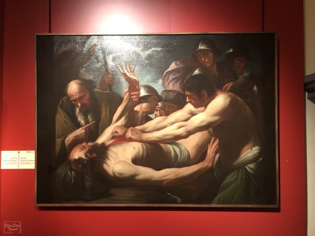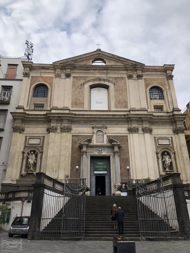 照著google maps的引導,走到小巷弄裡面,試圖找尋多納雷吉納紀念建築群,那不勒斯教區博物館(IL COMPLESSO MONUMENTALE DONNAREGINA),包含了14 世紀的舊納雷吉納教堂和 17 世紀的新聖母瑪利亞教堂。在教堂門口驚喜地發現這陣子剛好有卡拉瓦喬的特展,內心充滿了期待。從新聖母瑪利亞教堂的大門進場,換票後,工作人員非常仔細的說明參觀路線,包含一樓教堂大廳與二樓的畫廊,包含特展,以及如何走到隔壁舊納雷吉納教堂。