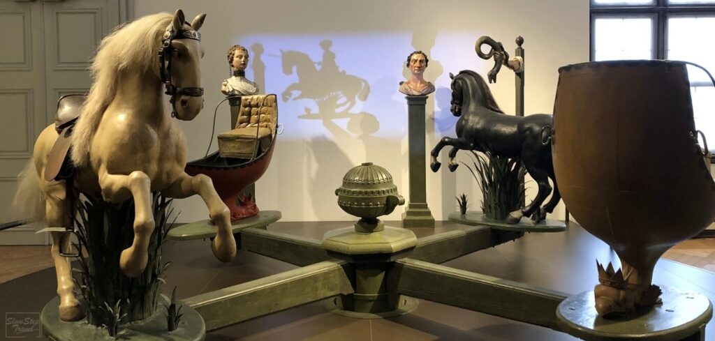 接著還有展示烏茲堡遭受空襲後的慘況,以及王宮修復的技術等,一切都是歷史的痕跡。覺得有趣的是小朋友遊戲間,坐著旋轉木馬,目標是將人頭打掉,滿頭問號。但把它想成是憤怒鳥的遊戲,應該就不會這麼矛盾。