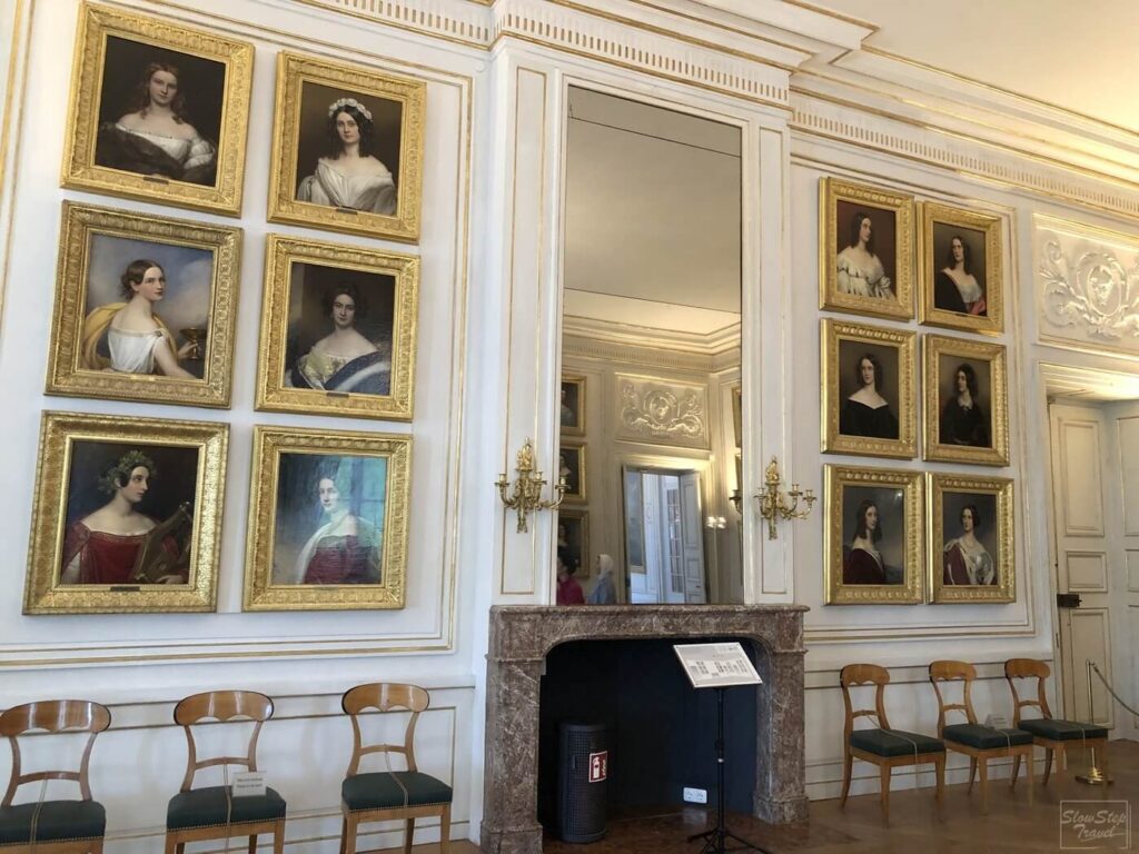 美女畫廊最初是為了慕尼黑王宮的宴會廳而建造,設計師Joseph Stieler繪製了這組著名的1827 年至1850 年間美麗女性肖像系列,包括來自各個社會階層的36位女子,之後又追加了2幅,每位氣質美女都穿戴著不同的服飾與珠寶,為這個空間增添了不少浪漫情懷。商店區甚至還有這些美人肖像畫的明信片。