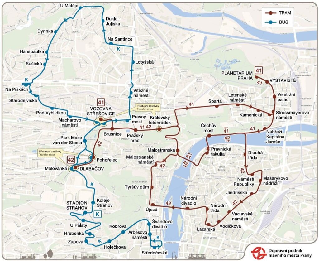 | 相關規定 | .時刻表 : https://jrportal.dpp.cz/jrportal3/LineList.aspx?t=2&mi=4&n=0&lc=41&d=2025-10-01 .路線圖 : https://www.dpp.cz/en/entertainment-and-experience/dpp-history/historic-tram-lines-nos-42-and-43 |