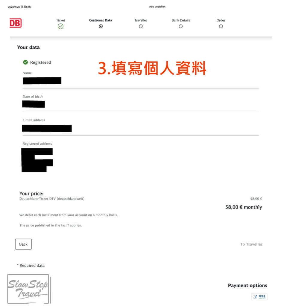 DB 德國鐵路 | 可購買自己與他人的車票 | 訂閱制(可取消訂閱) | 銀行帳戶 |