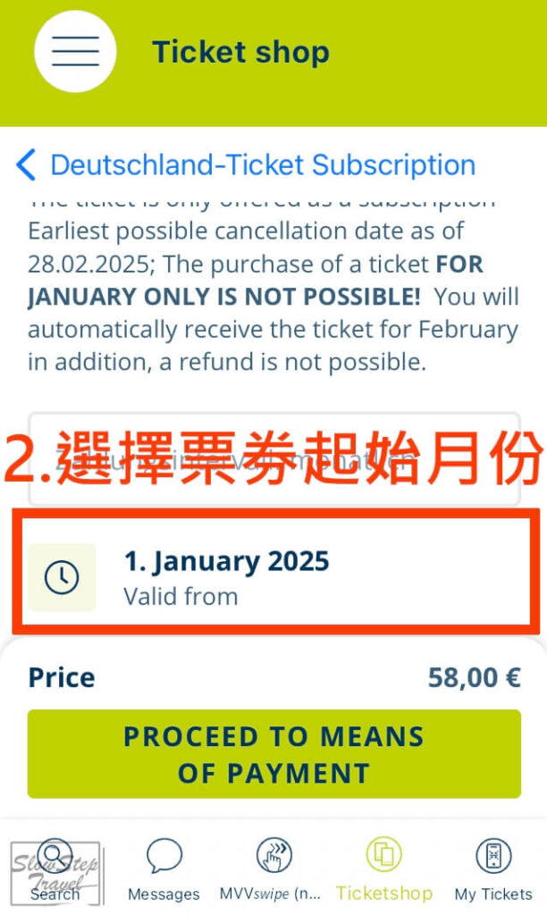 在MVV平台訂購德國車票,需要在每月10號之前取消下個月的訂票。