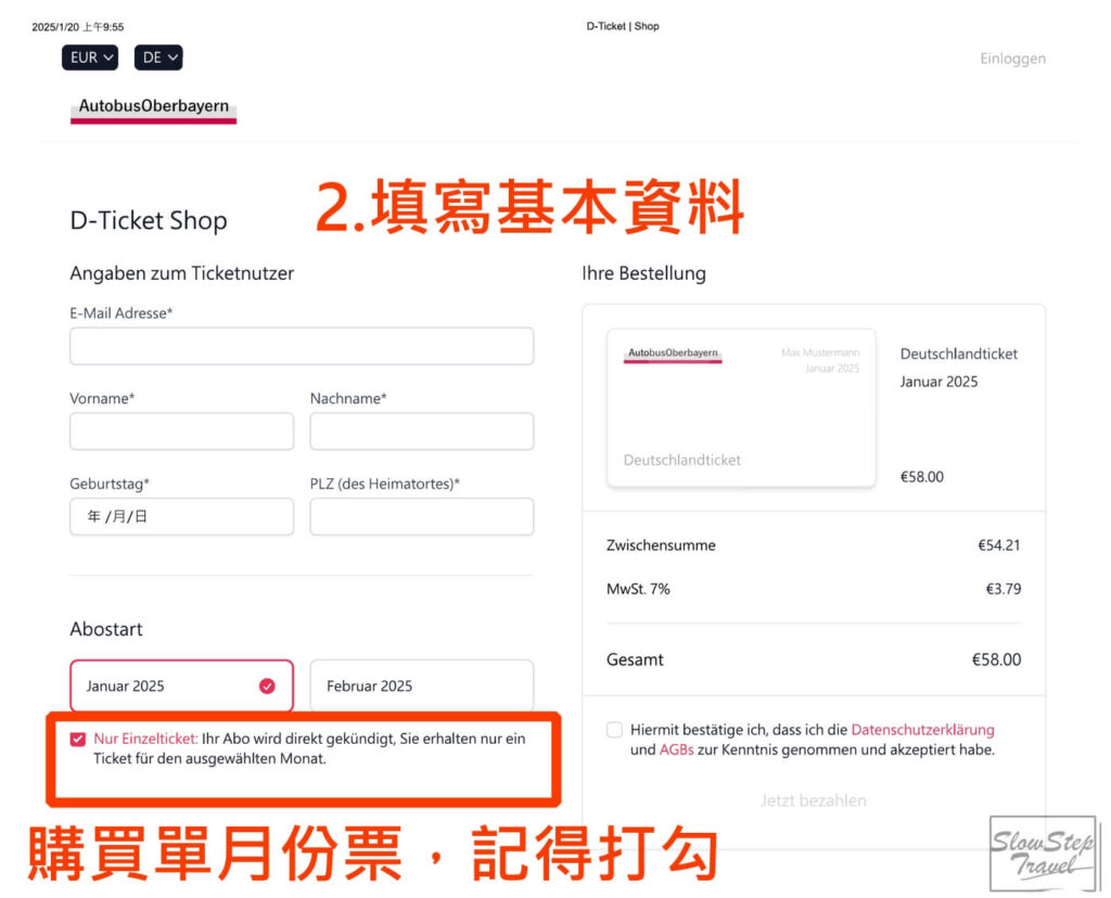 有一個問題是關於漢莎航空特快巴士 Lufthansa Express Bus,Abostart那邊是不是不能夠選擇月份?我現在點進去就是從Juni 2025(六月)到Juli 2025(七月),但右上方的Ihre Bestellung是顯示Juni(六月)的票。所以如果我是七月要去德國,要買七月單月的票,就得再等等了嗎?