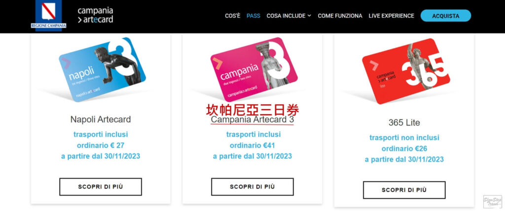 官方網站 : https://www.campaniartecard.it/campania-3-days/?lang=en