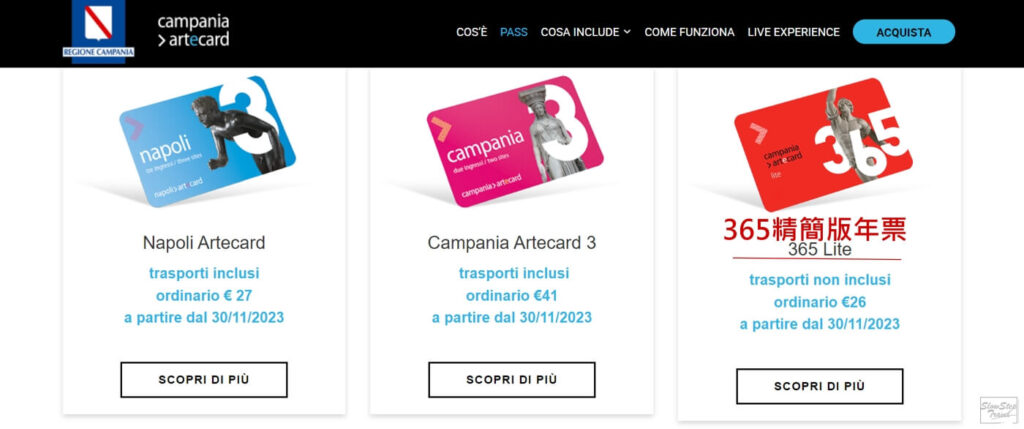 官方網站 : https://www.campaniartecard.it/365-lite/?lang=en